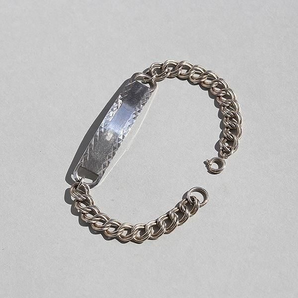 カットが施されたIDプレートに、1977年バーミンガム・アッセイオフィスのホールマークが刻まれたスターリングシルバーIDブレスレット