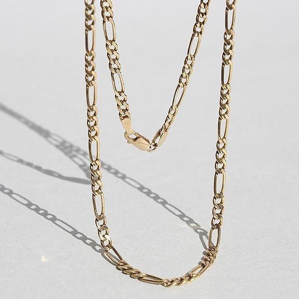 1990年、シェフィールド・インポートマークが刻まれた9CT(9K)ゴールドのフィガロチェーンネックレス。柔らかなゴールドの輝きが肌に自然に馴染み、上品で洗練された印象を与えます。クルーネックやシャツスタイルにも合わせやすく、日常使いからフォーマルまで幅広く活躍する一本です。International Bullion & Metal Brokers(IBB)メーカーズマーク、375(9金純度マーク)、シェフィールドインポートマーク、1990年デイトレターの刻印が押されています。英国国内での販売を目的としてイタリアから輸入されたものです。程よい厚みのある中空構造で、見た目に重厚感がありながらも軽やかな着け心地です。状態は目立つキズや破損もなく良好な状態です。年代物の為、細かな擦れ、細かなキズ等ございます。予めご了承ください。